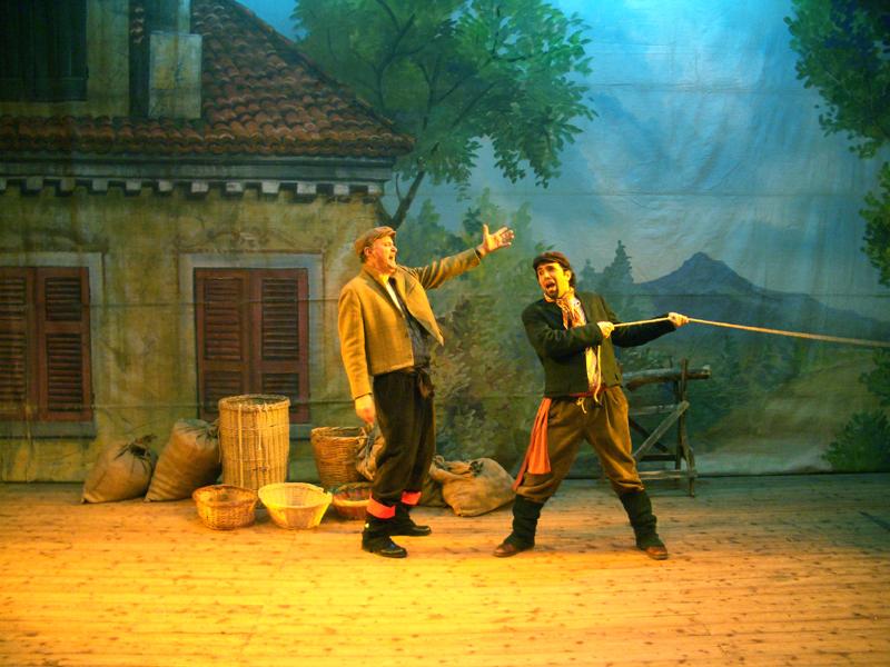 I due sono Lolò Zirafa, proprietario della bellissima giara “nuova fiammante”, che si è rotta, e Zì Dima, l’artigiano incaricato di ripararla.